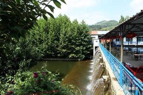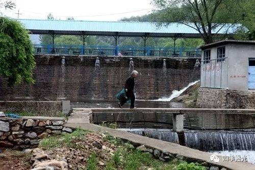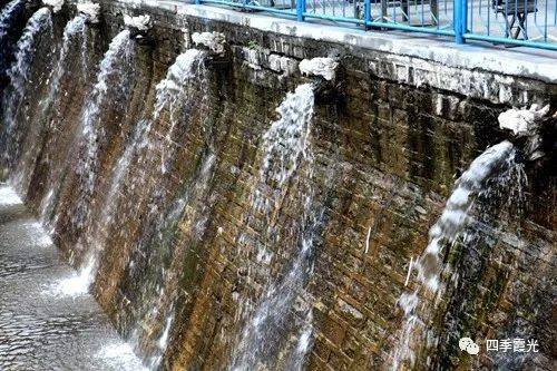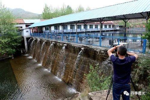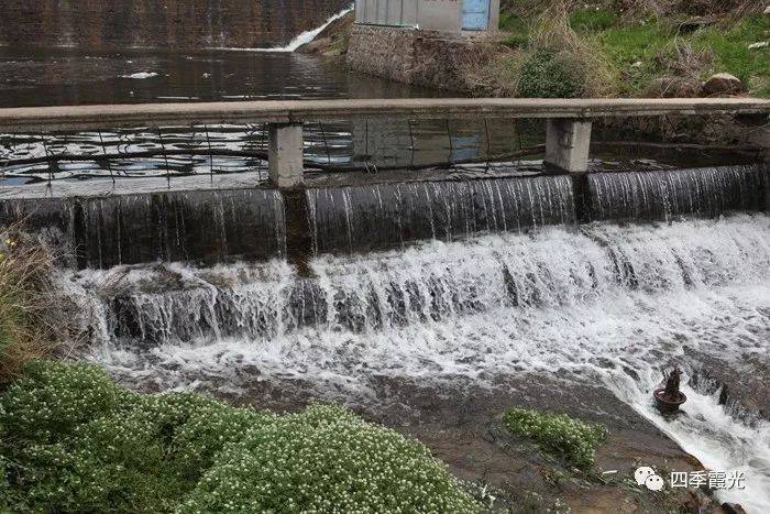 坝上水平如镜,坝下瀑声轰鸣,池里游鱼戏水。