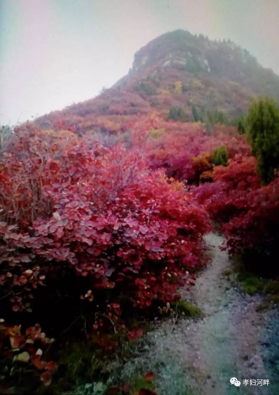 有时我站在桥头或岸边的垂柳下仔细地仰望端祥,有时我走进大山的怀抱中去认真地感觉体会。我在想,笔架山的红叶为什么这样红?她为什么红的让我流泪让我留恋让我癫狂不忍离去?直到我走近山凹中的这座院墙时才顿时恍然大悟豁然开朗,原来这里有一座人们永远也不会淡忘的建筑___烈士祠。在这空旷无人的荒凉的院落中的陈旧大殿里供奉着革命战争时期牺牲的469位烈士的牌位。笔架山的红叶就是用他们的精神浇灌用他们的鲜血染红的。从这里每一片红红的叶子上你都能看见他们青春的脸庞咀嚼出他们的英雄壮举和英勇无畏的味道来。于是我便不由自主地轻轻地哼唱起《花儿为什么这样红》那首人们非常熟悉的很抒情的歌来。