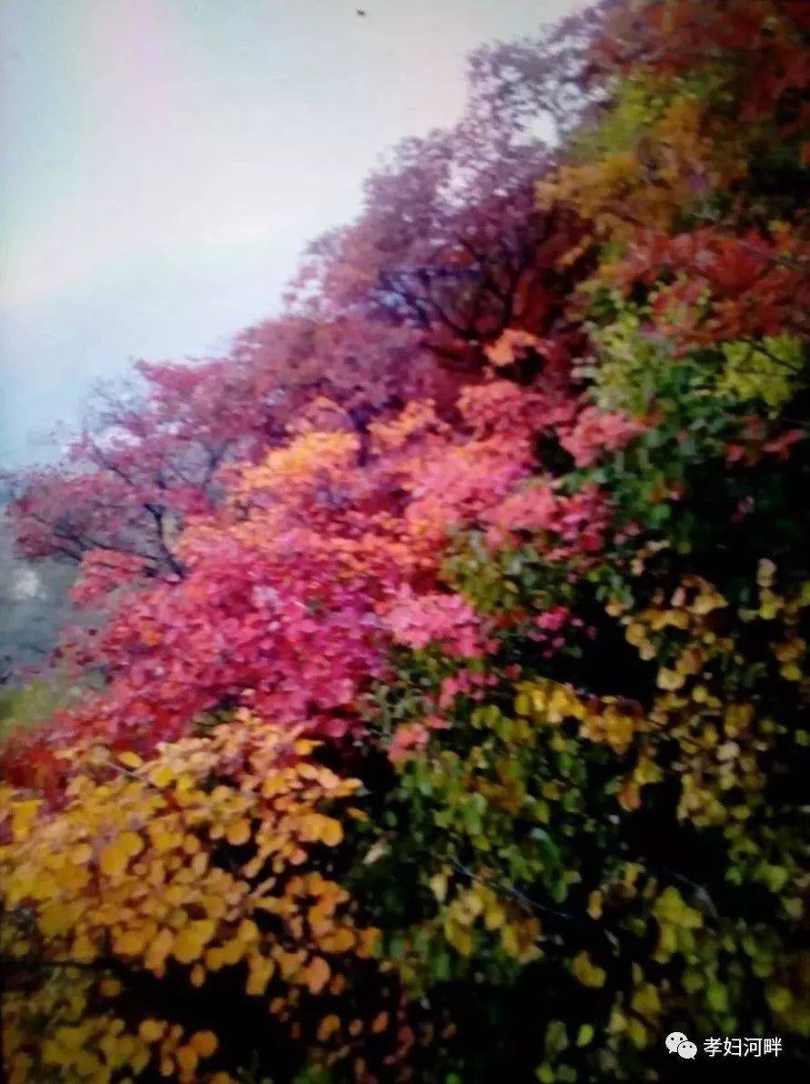 如果说辰已山是以其古而名,汉王寨以其雄而名,砚台山以其险峻而名,则笔架山乃是以其隽秀而名。尤其是笔架山的红叶,每当山野红透层林尽染,金色的桔黄的橙红的血色的各种叶子和碧绿青翠的柏树混杂一起,一簇簇一片片一层层拥拥挤挤熙熙攘攘,无论你是远眺近观还是把自己融入,总有那么一种缠缠绵绵的浓浓密密的红红火大的甚至卿卿我我的细腻而又狂放的情结粘住你,让你忘我无我流连忘返。