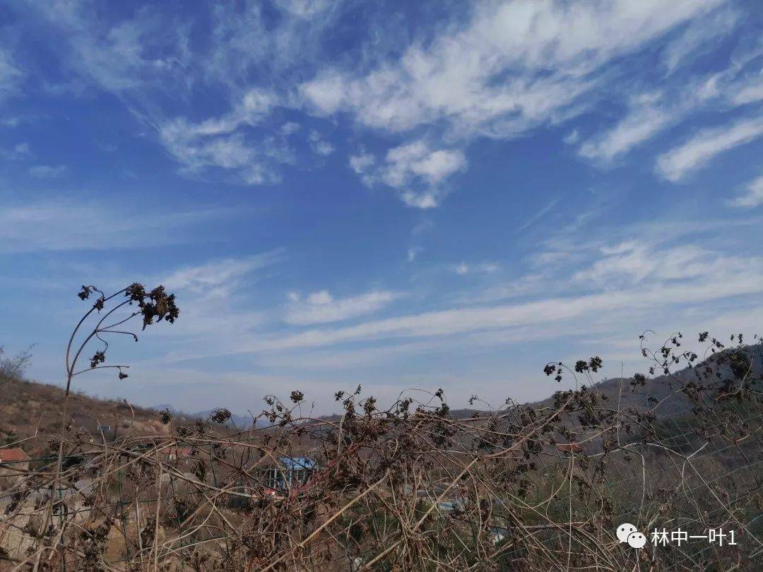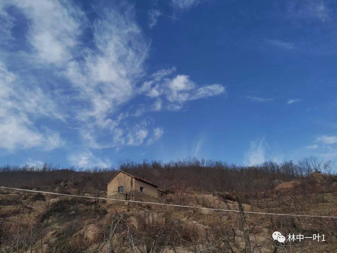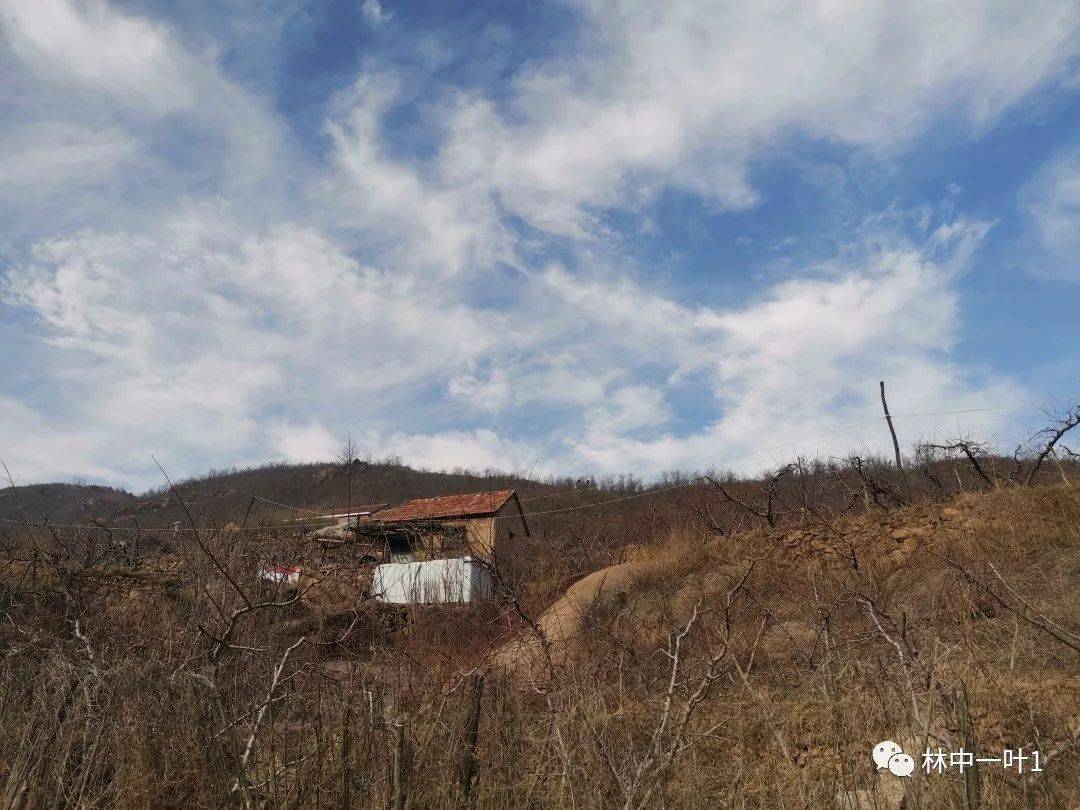 从河边上山,再转到郝峪公路上。蓝天白云下,桃树落光了叶子。很多桃园里,辛勤的桃农已经完成了冬剪。树枝上,孕育着生机,更孕育着新一年的希望。桃园里的小屋,静默着。野草的种子,在风中舞蹈。