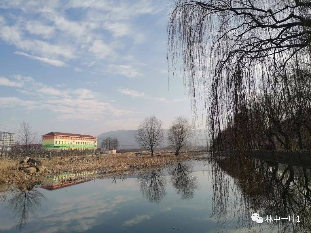 淄河岸边,垂柳临水照镜梳妆。流水淙淙,不忍得结冰。水中的倒影,清晰可见。云朵的倒影,尤其妙不可言。