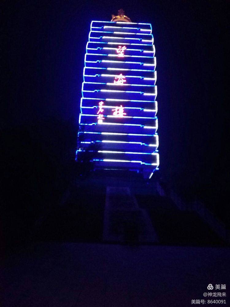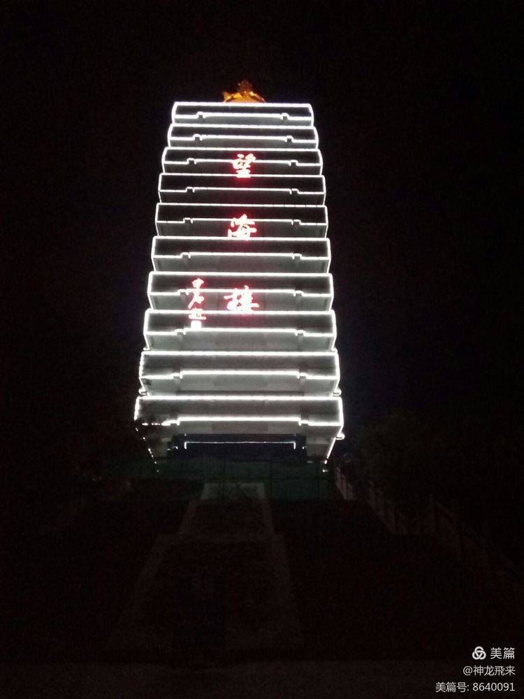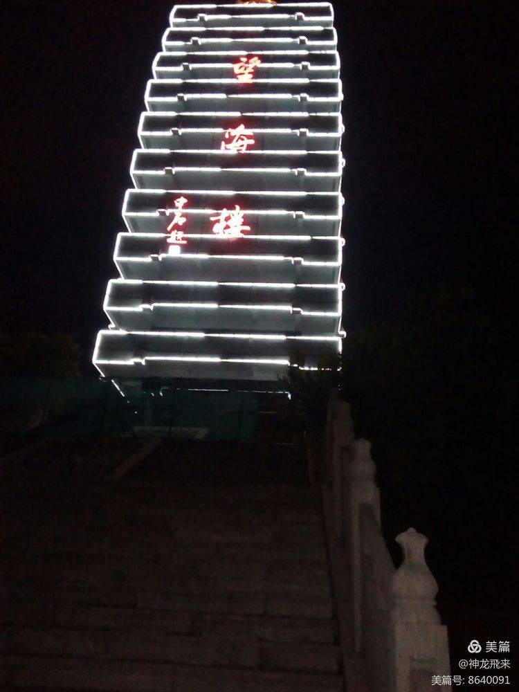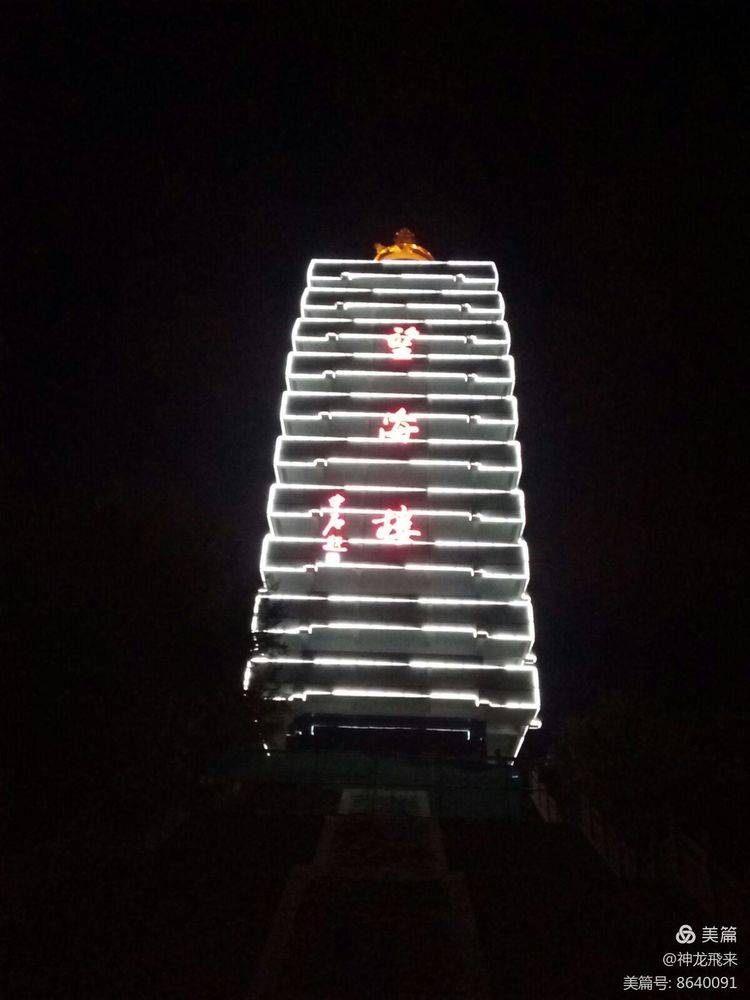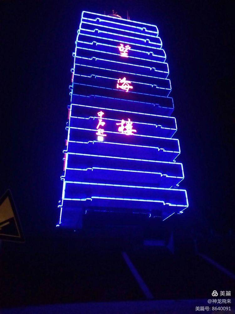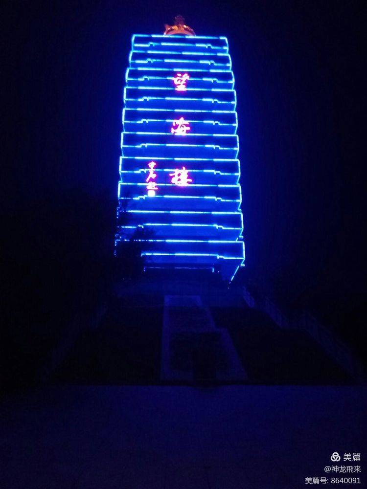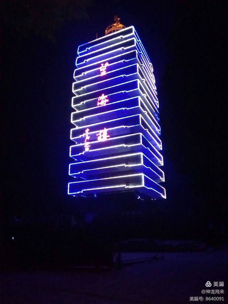 现在的望海楼还在改造中,外部灯光已亮起来了,每到夜晚都为美丽的博山增添了几分色彩,为博山绽放出一道亮丽的风景。