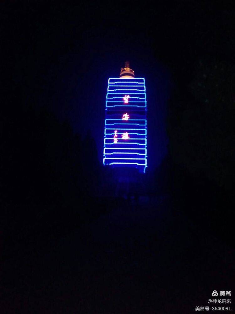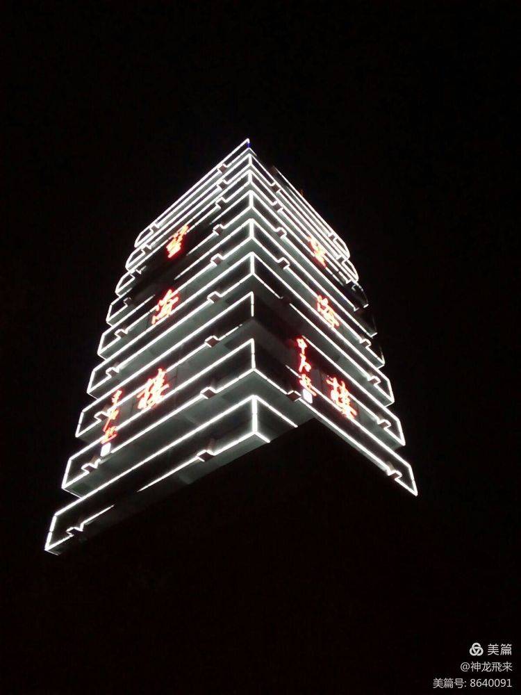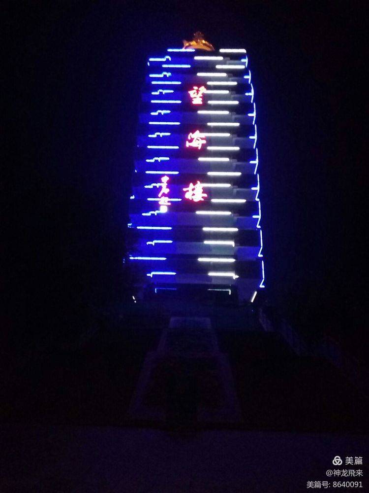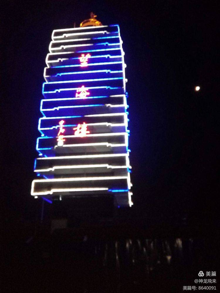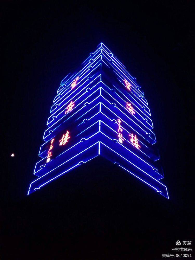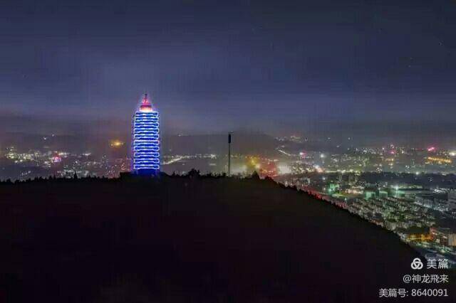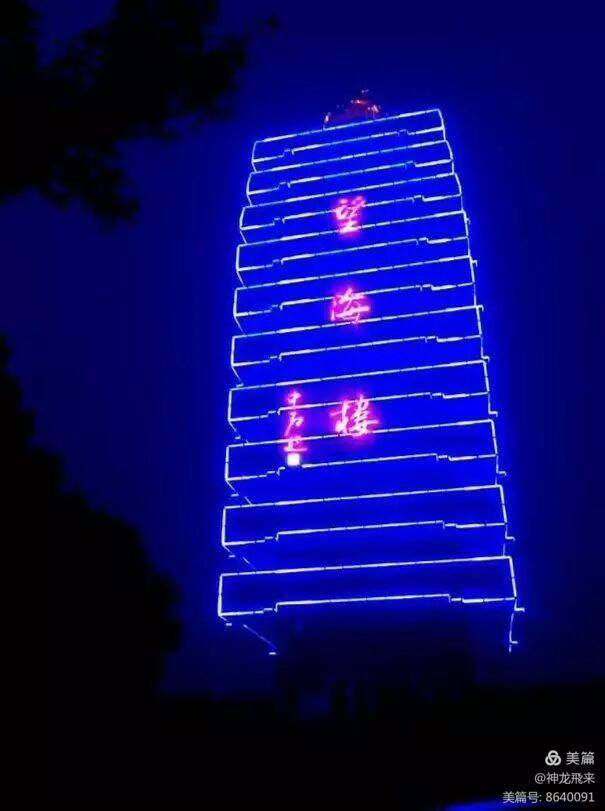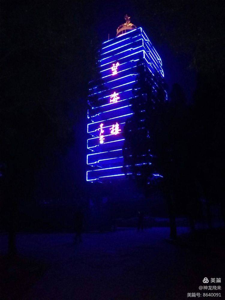 现在的望海楼还在改造中,外部灯光已亮起来了,每到夜晚都为美丽的博山增添了几分色彩,为博山绽放出一道亮丽的风景。