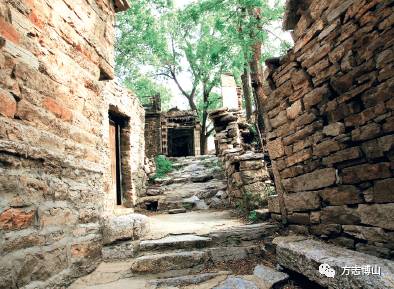 处于山谷之中的西厢,房屋建筑多为石头垒砌的老房子,古香古色,别有风格。原生态的石头院落保存完好,各个院落因地势而建,大小不一,层次分明,错落有致,不以精美气派见长,而以简洁质朴取胜。保存较为完好的院落有6 处,均位于村中小河的北边。以张家大院、朱家大院始建于清乾隆年间,院落南北约20 米,东西约16 米。房子都是用当地产的石头而建,半米厚的石墙,门窗上的石碹,屋顶周边的薄石板,极具古村特色。