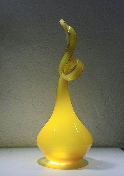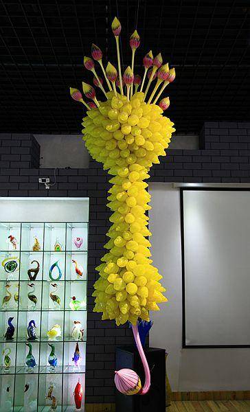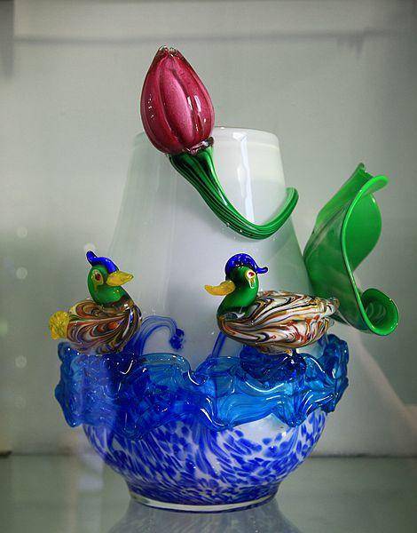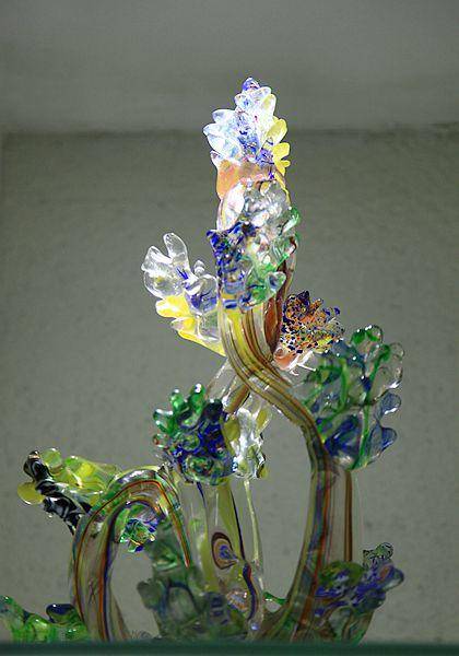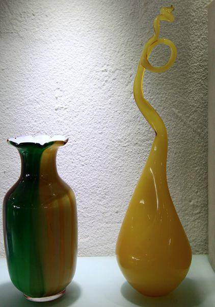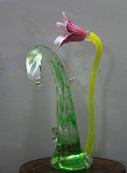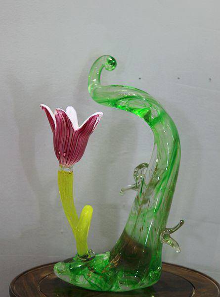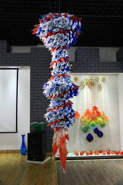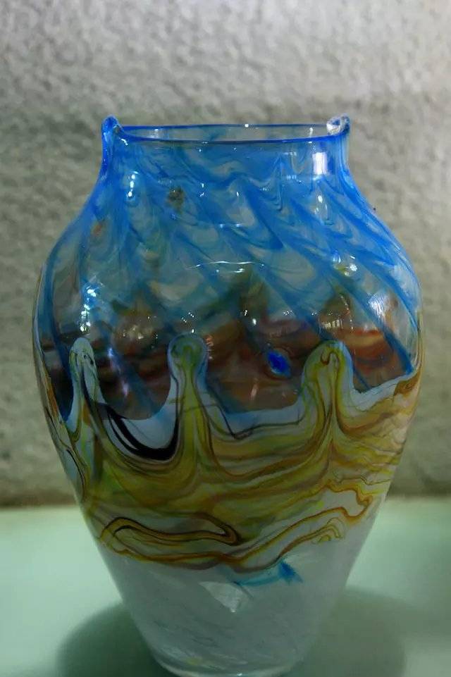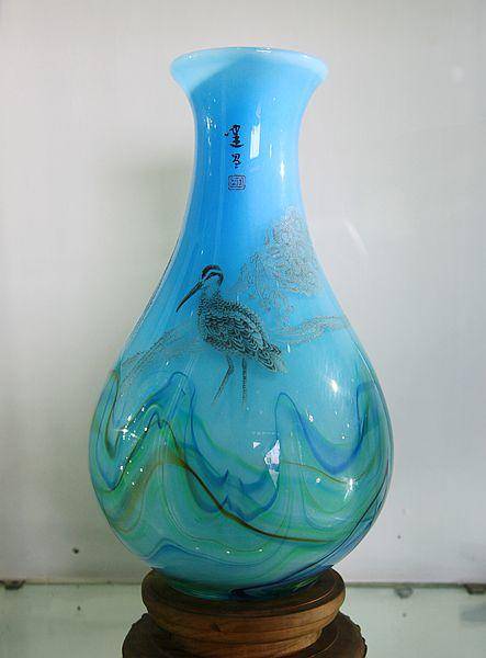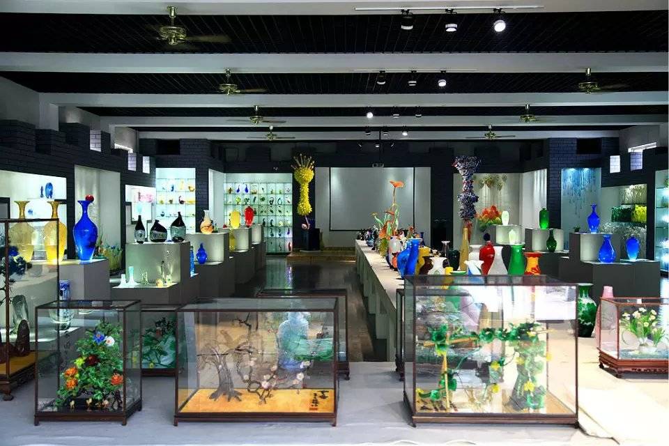 一是热成型车间。在这里,你会看到琉璃大师挥汗如雨,不停地穿梭于炉口与工作台之间。根据订单需要,一团火红的琉璃在他们手里如同变魔术一般成了老鹰、兔子、神龟、仙鹤,或者大大小小、玲珑剔透的花瓶、挂件和各种器皿,真是花样应有尽有,色彩浓淡相宜,神态惟妙惟肖。琉璃大师们胸有丘壑,用户需要什么他们就制作什么,或者说他们想创造什么就创造什么。根据工艺品的大小难易,一件工艺品的成型大约二十分钟至一个小时就可完成,繁琐的大件一天也能做三四件或七八件。作品成型后,立刻送入400度的温炉慢慢降温,四天后出炉方知这件作品是精品还是存有瑕疵。要知道,出精品的概率只有10-20%,瑕疵却是防不胜防。