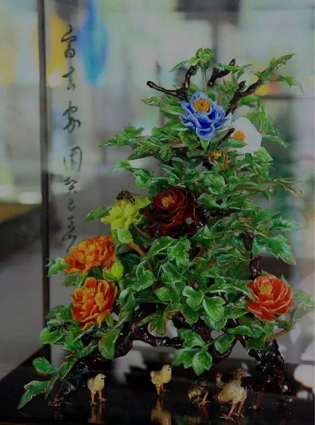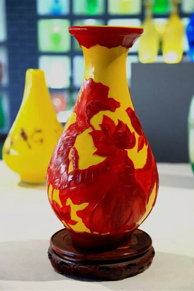 这是一支勇于创新的团队,他们如董事长一样乐于钻研,不断改进配方、温度、成型等多方面技术,攻克一个个技术难关,不仅研制成功了传统的鸡油黄、鸡肝石、松石绿等各种名贵材质的琉璃工艺品,还把濒临失传的套料、搅料、抅料、垛料、撑制鼻烟壶重新创作出来。还创作了仿青花系列花瓶、摆件。在众多的色料中,鸡油黄的炼制尤其不易,“九缸十不成”说的就是这个意思。因此,鸡油黄又有“黄玉”美称。目前,“西冶工坊”已经生产出各种瓶形的琉璃雕琢工艺品,如美人瓶型鸡油黄的西厢记人物,萝卜型白套绿的山水大瓶,白套红的玉壶春型花卉大瓶等。