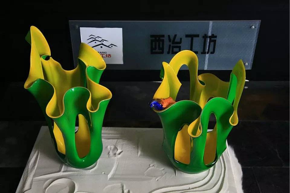 “西冶工坊”是位于西冶街的工坊?是,也不是。西冶街曾是琉璃一条街,处处是工坊。博山琉璃历史悠久,明朝初年已经为宫廷进贡产品了,清朝时期博山成为全国琉璃生产中心。20世纪30年代,西冶街两旁几乎家家户户都做琉璃工艺,从业人员达到4000人。1951年,西冶街成立了炉业料器供销生产合作社。1966年,合作社转为博山美术琉璃厂。20世纪90年代,琉璃厂宣布停产。经过了城市改造,西冶街由原来黑砖黑瓦的琉璃作坊一条街变成了商铺林立的高楼大厦一条街。