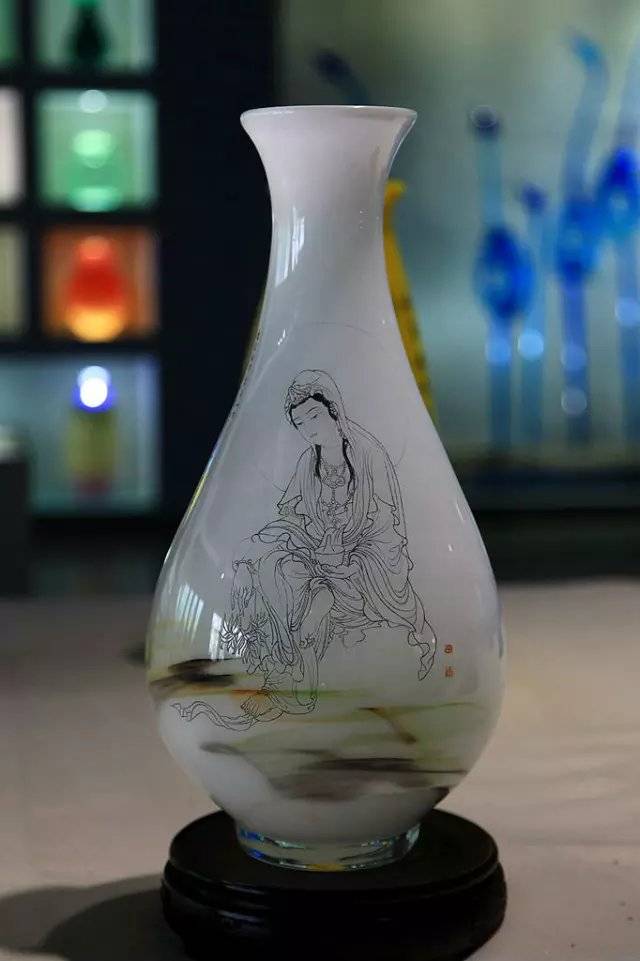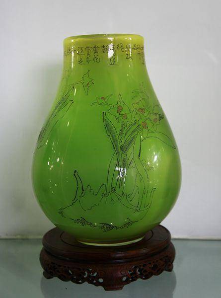 二是冷加工车间。在这里,你会看到艺术大师们技艺有专攻。有的专注雕刻,有的专注抛光(轮工),无论哪一种工艺品的成型,都要经过若干时日方能完成。尤其是雕刻,他们要将热成型的精品套料后进行再创作,其精雕细琢至少需要两个月左右。这里的艺术大师要甘于淡泊,耐住寂寞,更需要高超的绘画天赋与雕刻功底。如果说战斗在热成型车间的艺人是魔术师,那么冷成型车间的大师则是仙风道骨,凌然仙人了。自然,整个雕刻过程来不得半点马虎,若稍有疏忽,几十天的心血就会白费了。