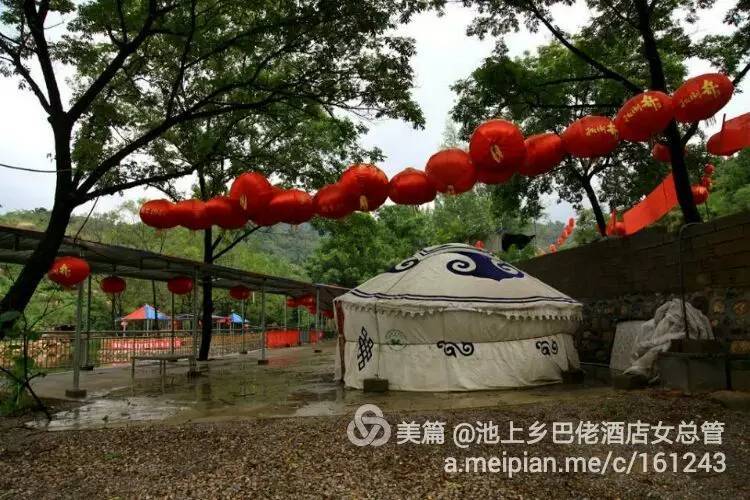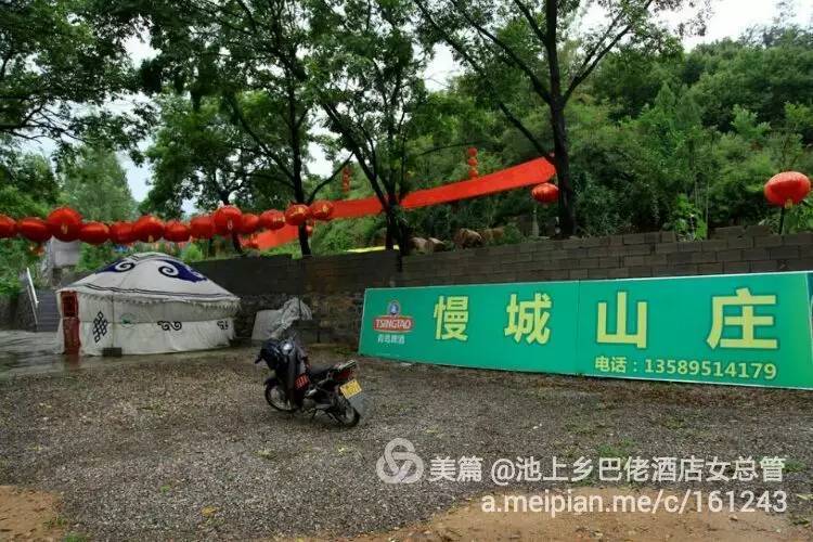 除了水,除了满眼的绿,除了黄的花、红的花,慢城山庄又添一景——原汁原味的蒙古包。圆圆的包,团团的顶,点缀着图案的蒙古包会让你产生一种冲动,打开门,走进去……