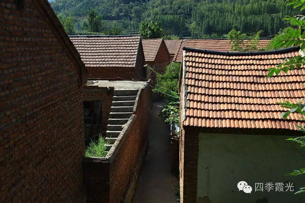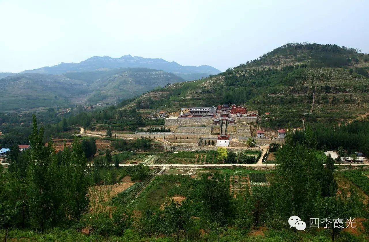 从泉子南边,沿着小路上山,就看到了远处的雁门寨,通往韩庄学校的路,以及旁边的古楼。