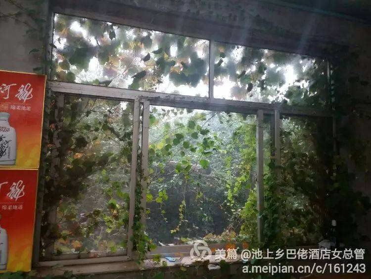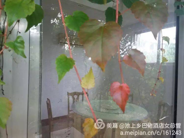 你瞧,爬山虎的生命力,延伸能力有多强,总是顺着窗户缝子遛进了大厅,是否也想品品美食或与客人互动一下呢!
