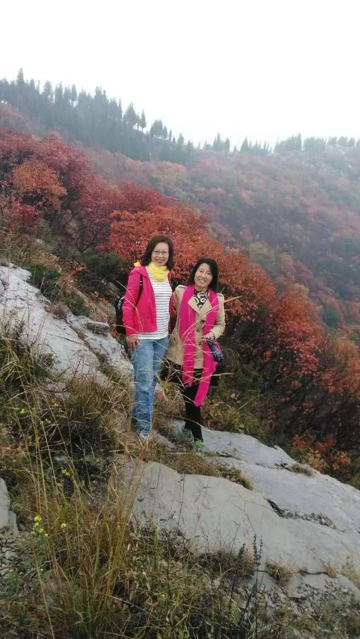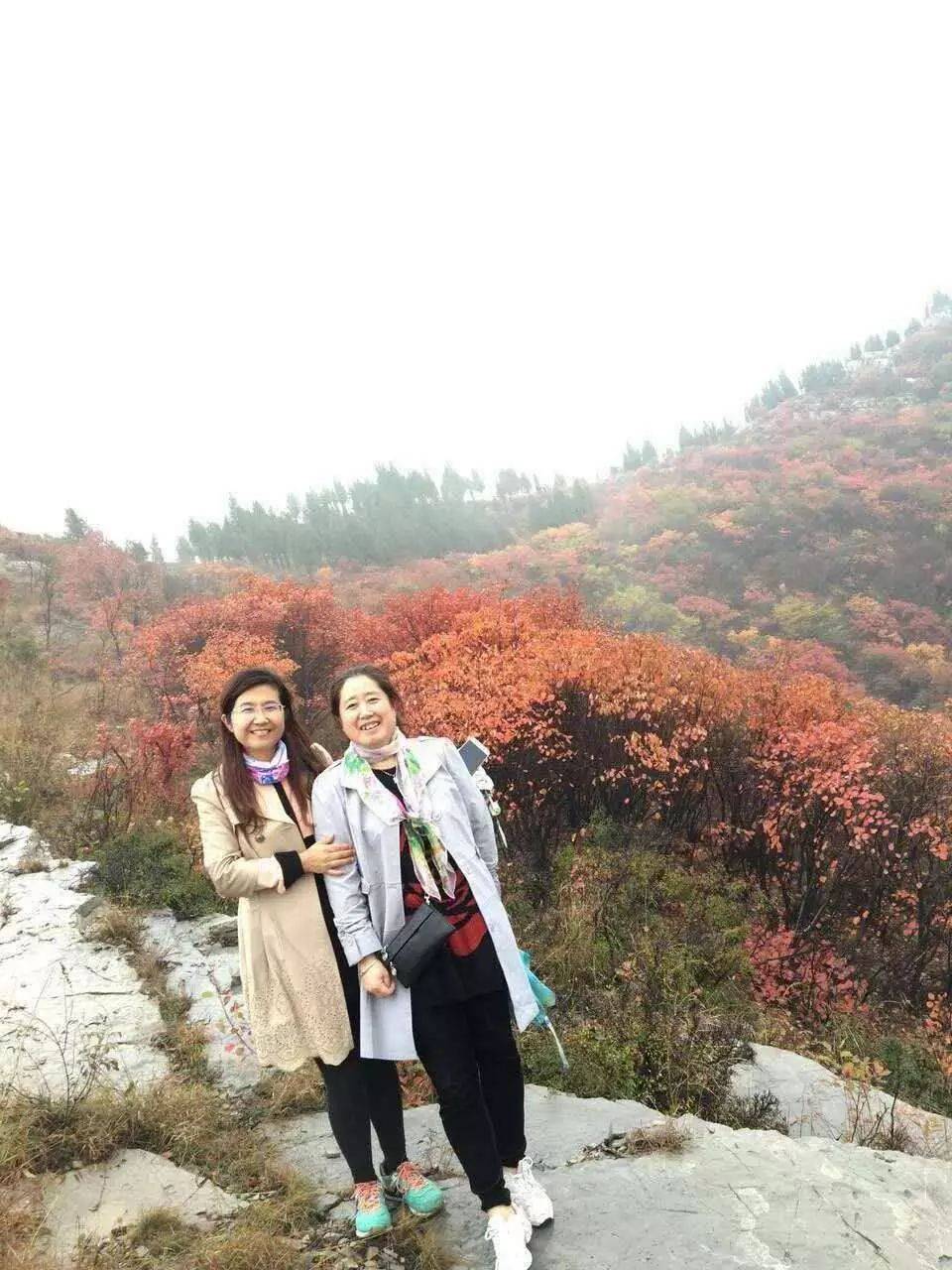 同学们纷纷与红叶合影,感慨二中的操场没变,皮峪的部队撤了,当年驮着煎饼卷求学,天天抹一把脸跑操,对了,冬天脸盆里水是有冰碴的!