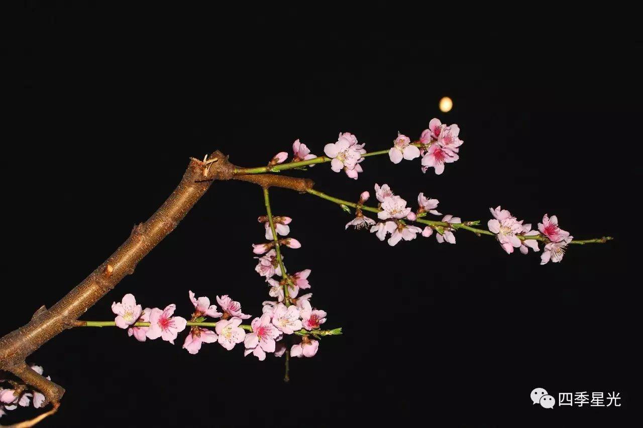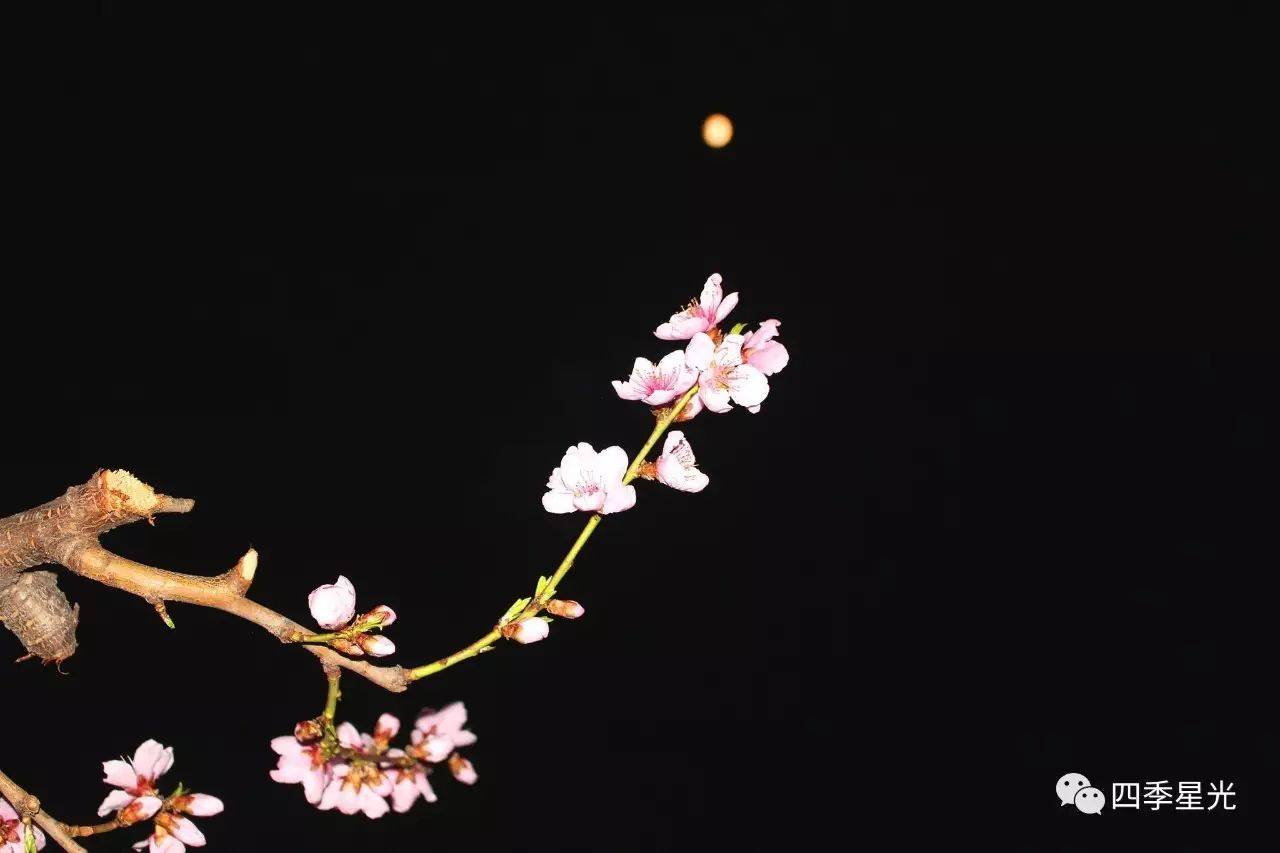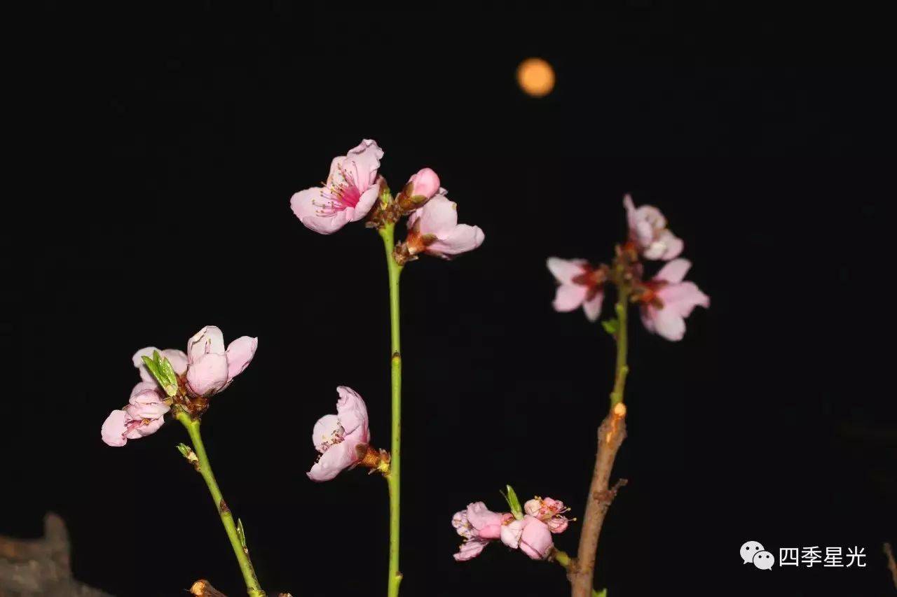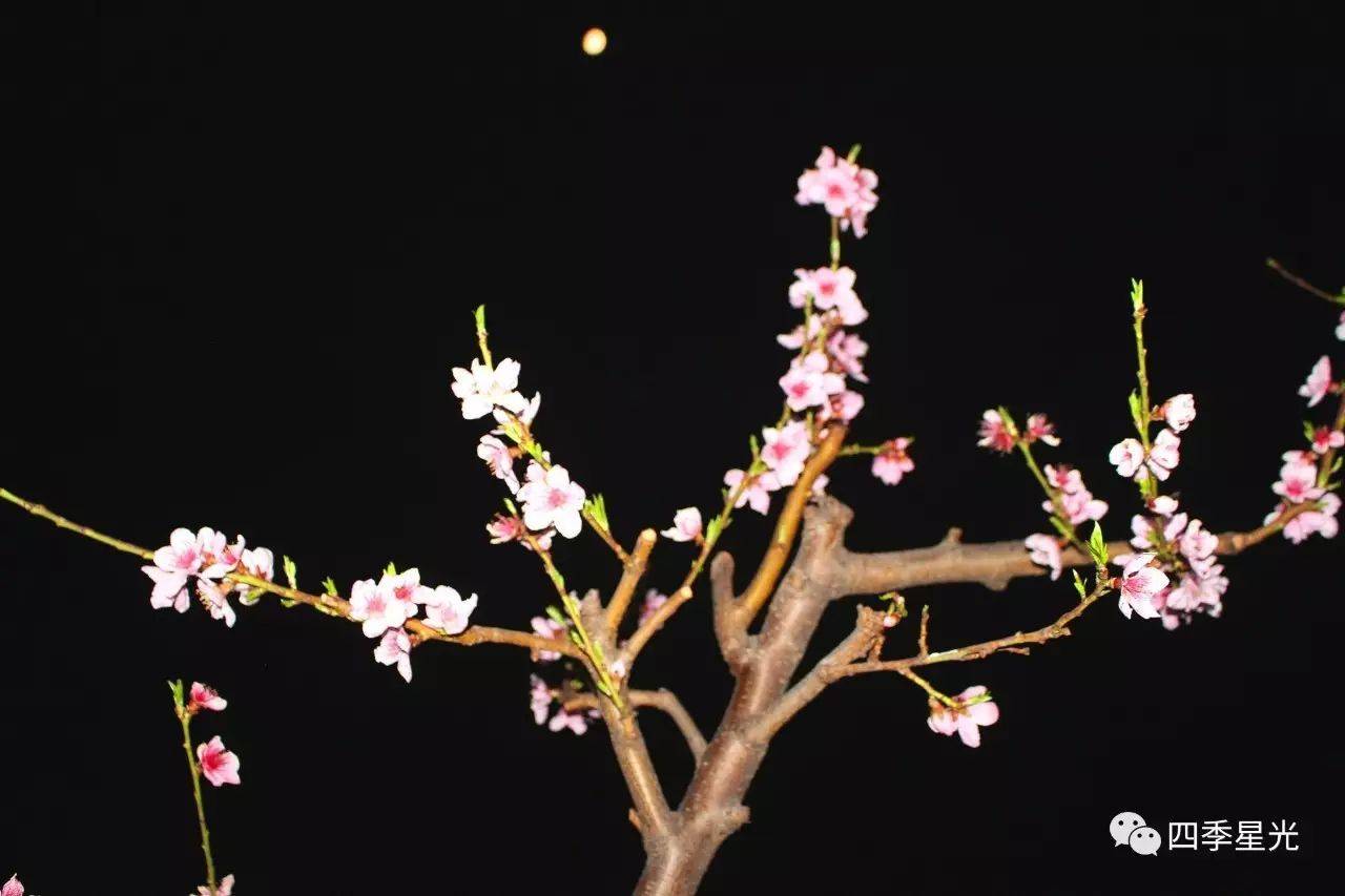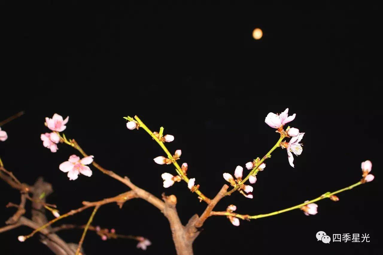 瞧!月亮也来池上看桃花,赶也赶不走!!