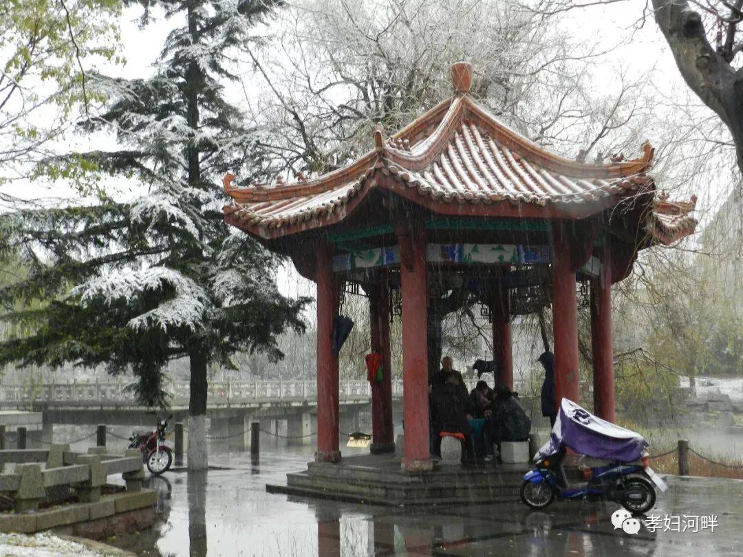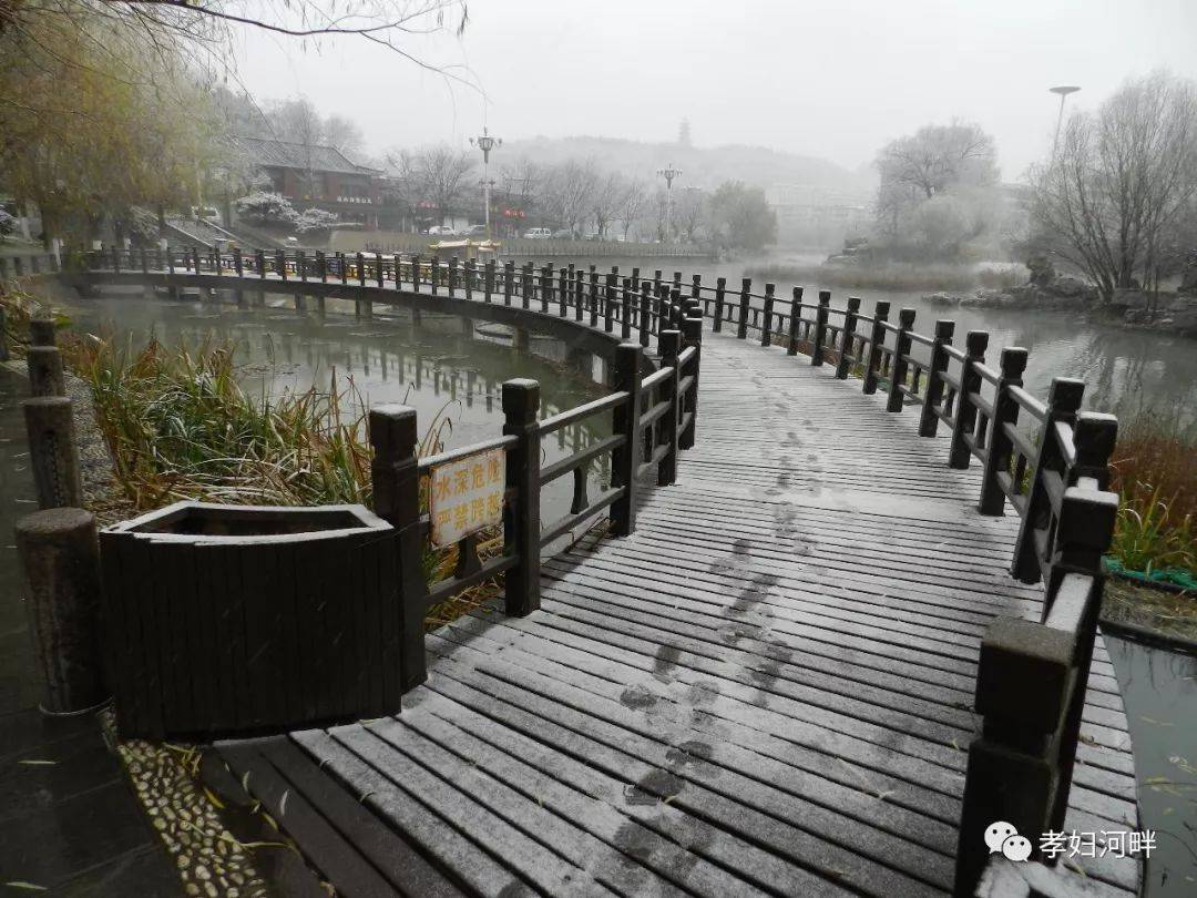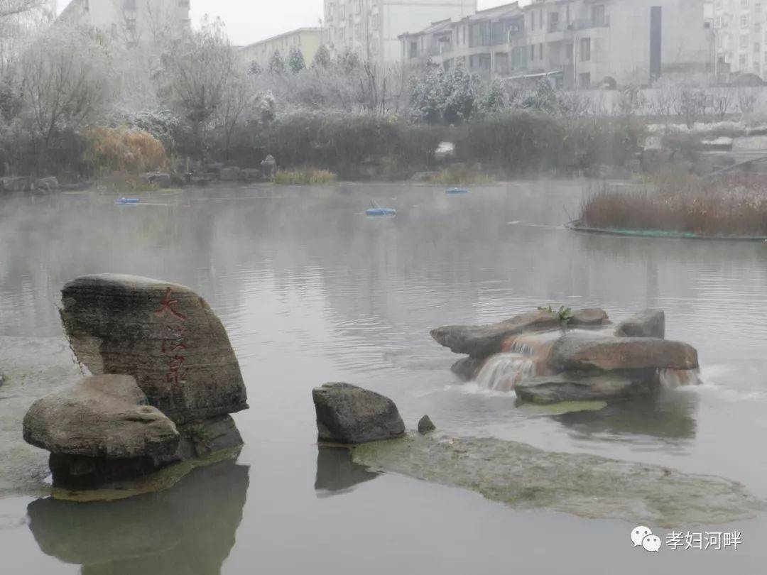 平静的文姜湖,雪花落下,不见一丝痕迹