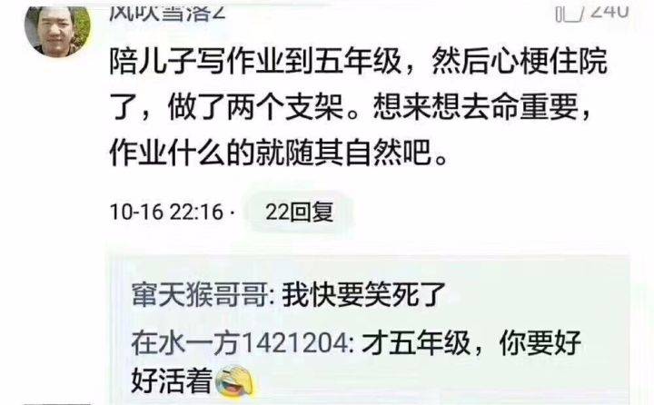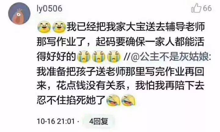 面对一个又一个作业满满的夜晚,也许只有这两位网友的评论,能让你感到安慰: