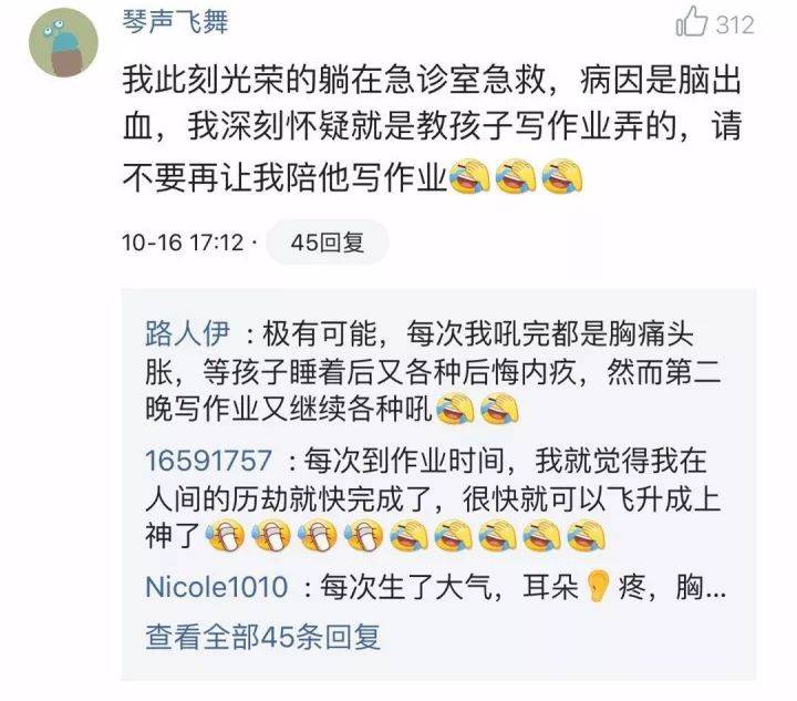 这两份特殊“病历”,来自一篇题为《老娘我做错了什么,要陪孩子做作业……》的文章下的评论,不少爸妈对两人的“遭遇”感到同情,更多家长表示找到了组织: