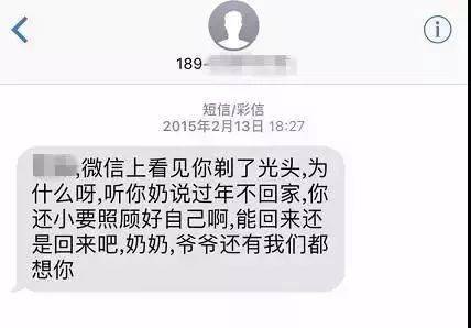 @于鳯鳯:这条短信是我新号收到的第一条短信,应该是前主人的家人发的吧!当时不知如何回复,也一直保存着没有删。希望这个剃了光头的孩子能够回家过年。