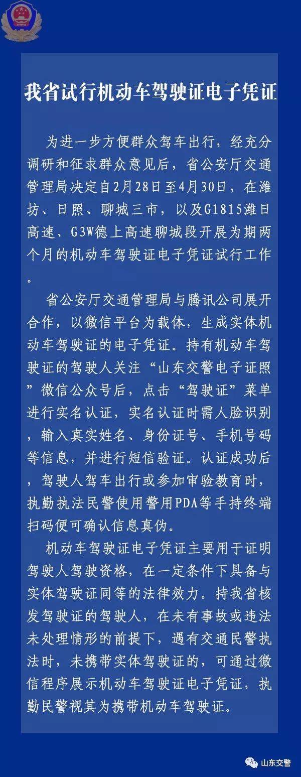 方式一:在微信“公众号”中搜索 “山东交警电子证照”并添加关注;