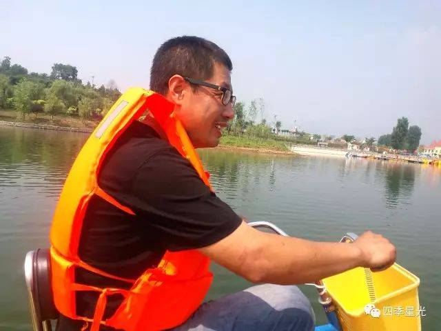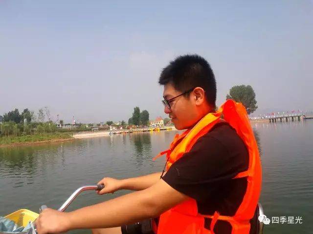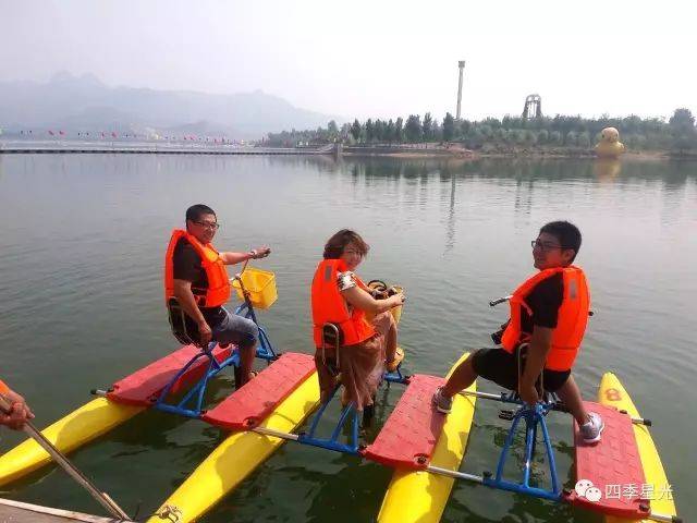 经人推荐,先玩第一个项目,水上自行车,请工作人员给我们照了一张合影!