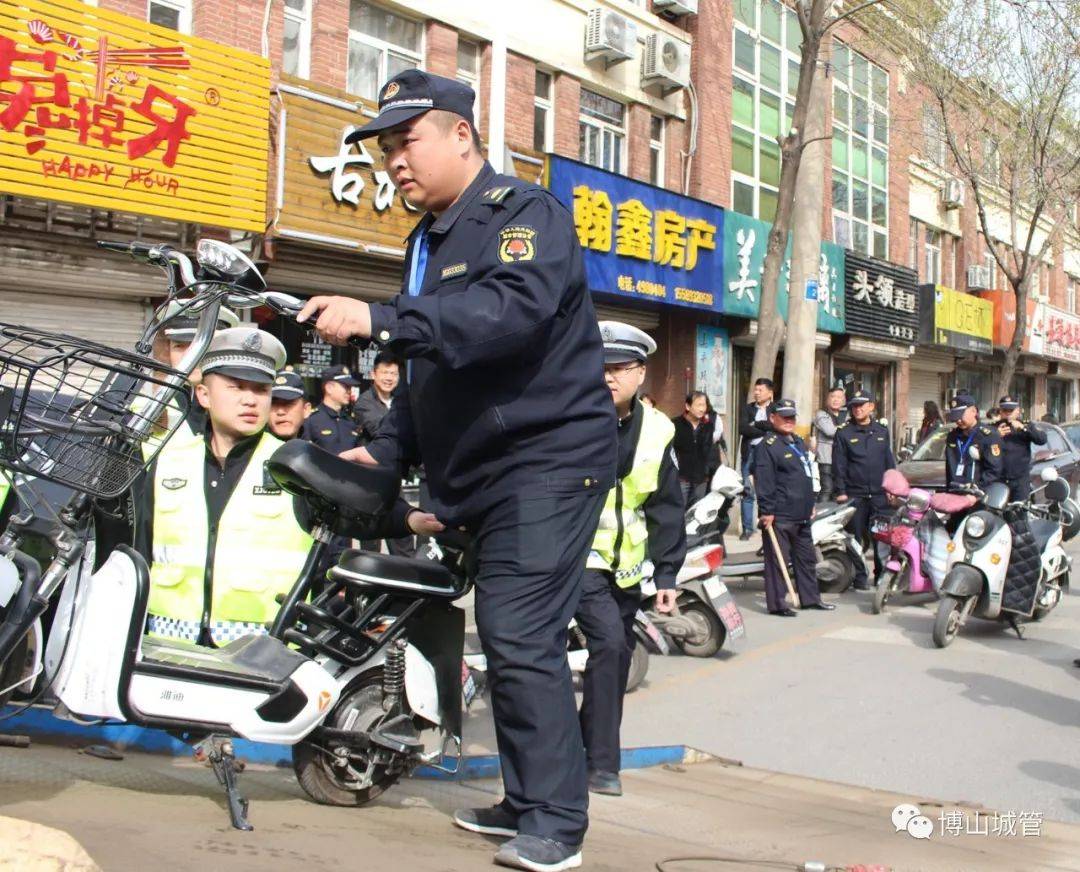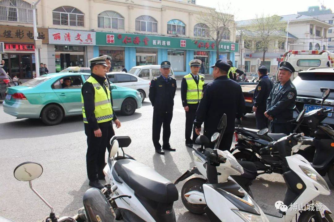 为整治市区道路交通和市容管理的难点问题,营造畅通有序的道路交通秩序和文明整洁的市容环境,3月27日,博山区综合行政执法局联合区交警大队,对白虎山路、白虎山西路非机动车占用机动车停车位现象进行集中整治。