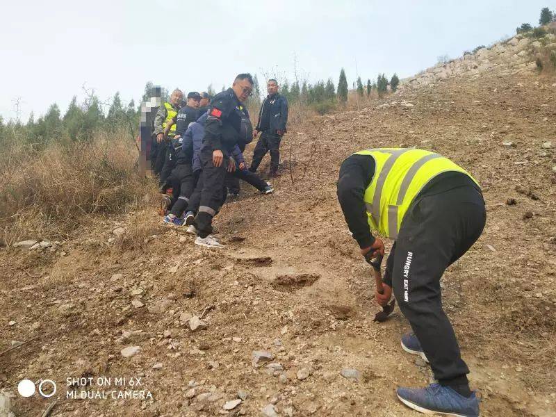 王效东安排队员准备用担架将女孩抬下山,老师和家长也参与了进来。不过,因山势陡峭且乱石太多,女孩被困位置又很高,贸然下撤极易发生危险。“有两名队员在前面挖台阶,老师也参与挖台阶。其他人有的抬担架,有的在担架后面拉着绳子,有的在前面往上推着抬担架的人,防止担架下滑。”