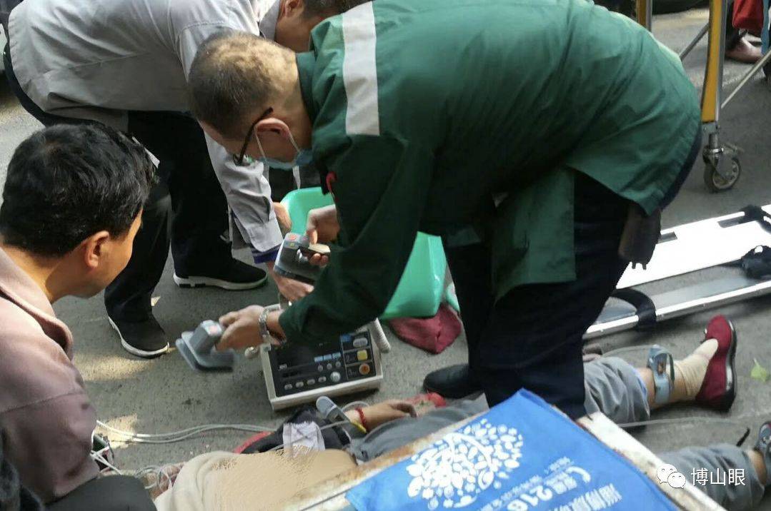 李军副主任及时施救,病人终于有了呼吸,救护车也及时赶到了,他们一起现场抢救。让我们为淄博市第一医院的医护人员点赞,为李军副主任点赞!