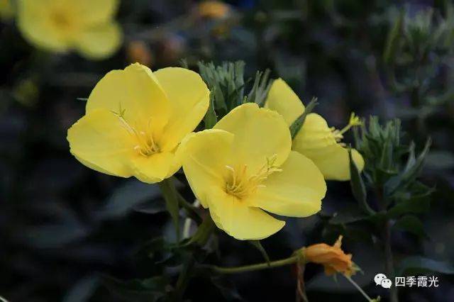高女士介绍,七点半是花儿的俗名,学名是月见草。月见草,是不是见到月亮才开的一种花草?或许是吧,因为这花儿天黑开放,艳丽一宿。翌日,太阳来了,它的精神也就渐渐萎靡了。