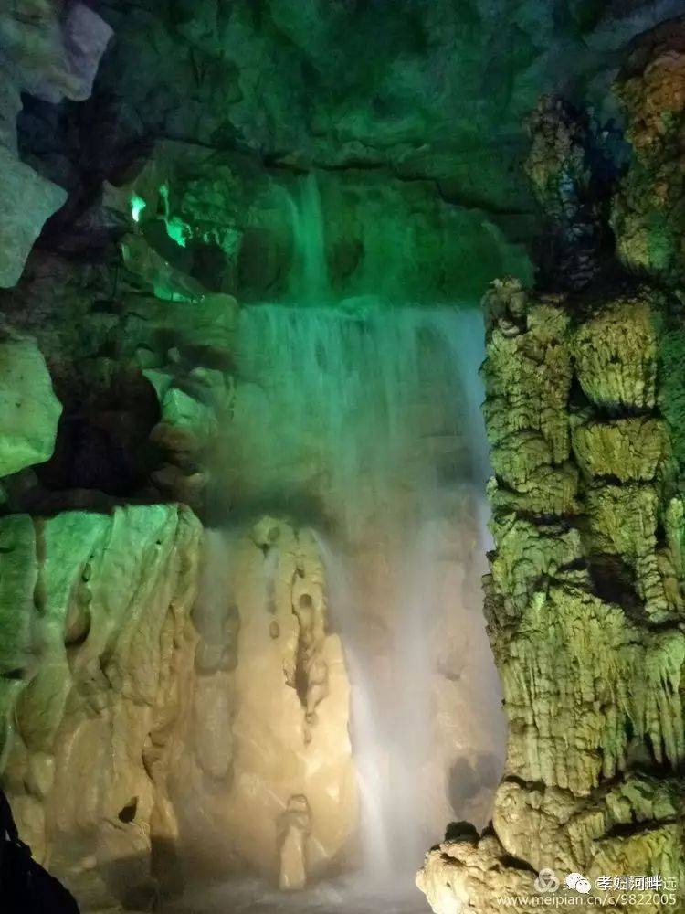 从大厅拾阶而上是一层溶洞群,组成一大大的椭圆形,中间空的是下漂流艇的大厅。下面小视频是一地下河瀑布。