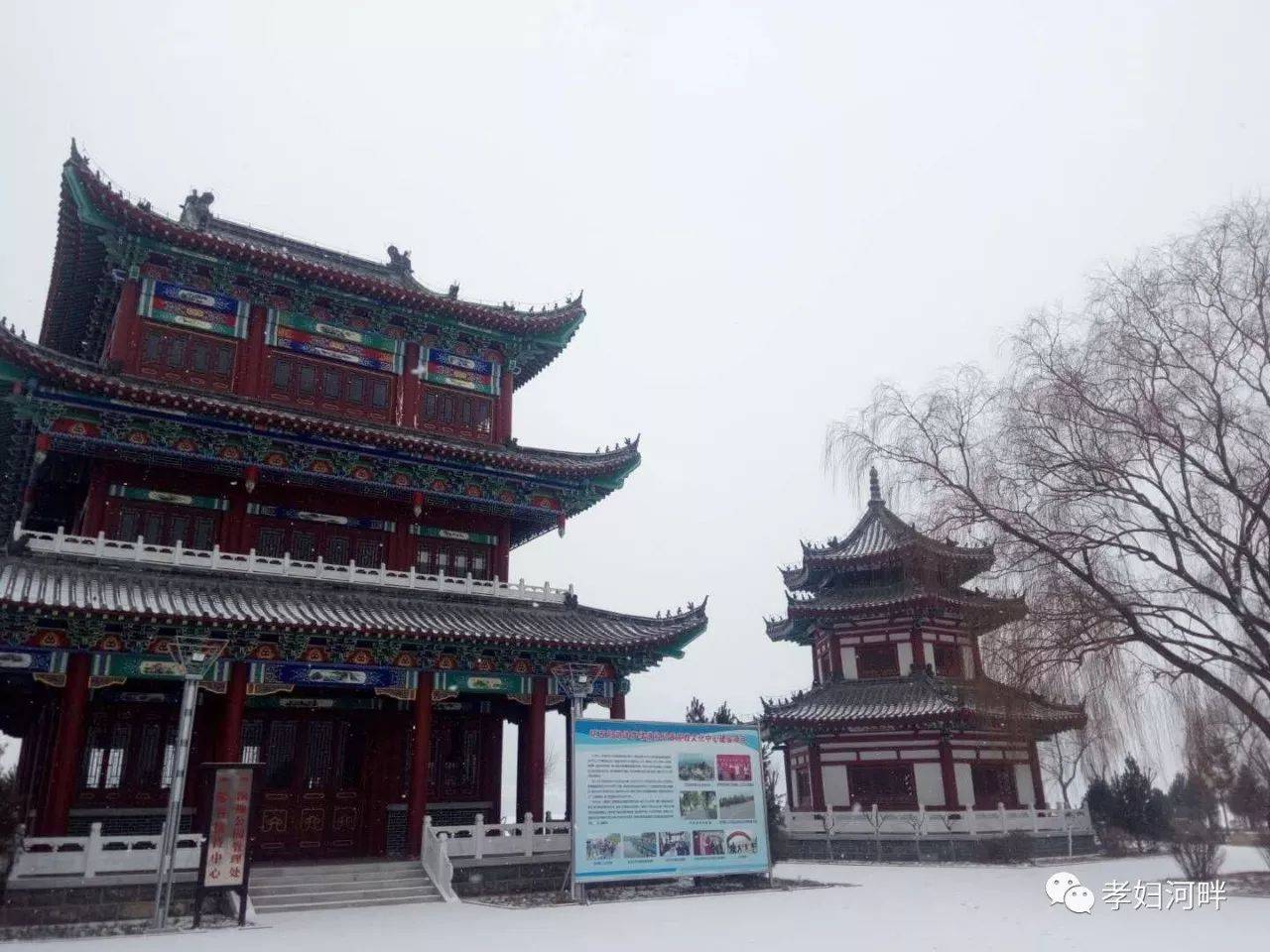 柳堤上还有一个好去处,那就是刚刚竣工的烟雨楼。烟雨楼在柳堤北段,临水端坐,重檐画栋,朱柱明窗,四面曲栏回绕,四周曲径回环,一进柳堤你就能看到它那宏伟的气势。雪积重檐,白色沁染下,更给它增添了厚重深远的韵味。烟雨楼周围错列亭、台、廊、榭,往北不远处就有一座四角亭。亭,轻巧灵动,精致秀美。亭前有供人休息的长椅。长椅上也积了厚厚的雪。不知是谁在长椅前留下一排脚印,深浅不一。似是追忆,似是流连,似是不舍。雪落无声,一切都将归于平静。还是等到春暖花开的时候,你再来找寻吧!